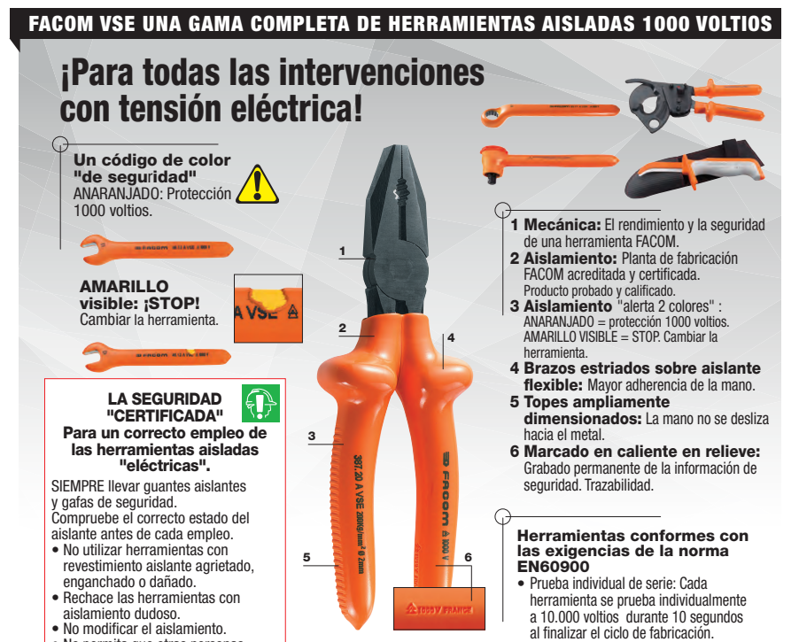 ALICATE UNIVERSAL 165MM AISLADO 1000 VOLTIOS SERIE VSE – FACOM